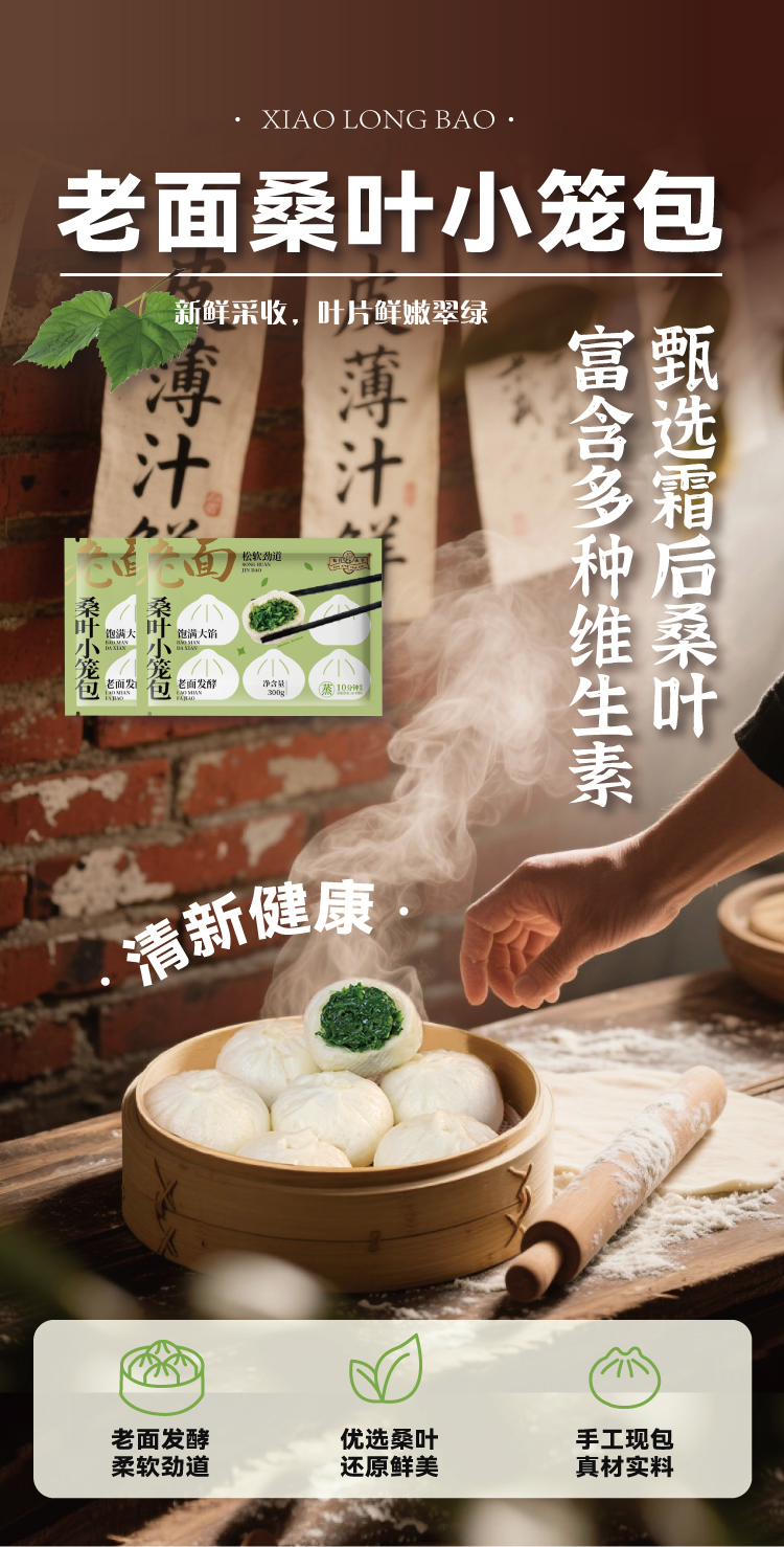 包行天下嵊州老面桑叶小笼包半成品加热即包子食儿童营养早餐面点